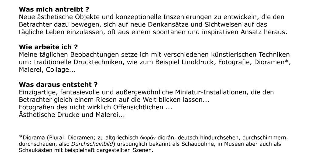 Über mich Foto: Christina Peek Annette Jünger Ausbildung Ausstellungen (Auswahl) Auszeichnungen nach oben