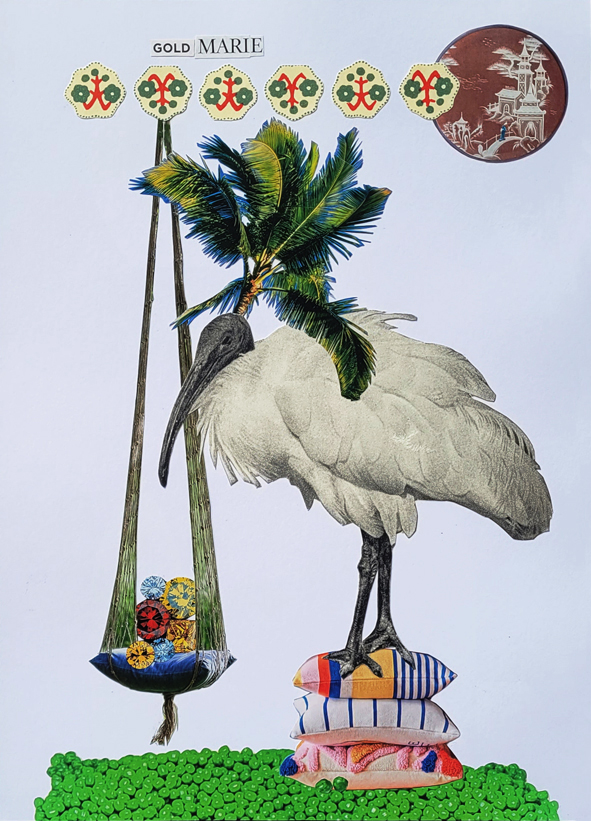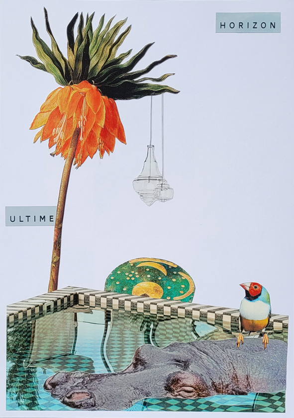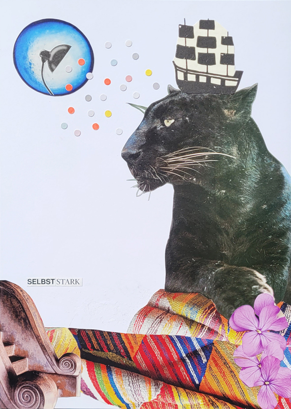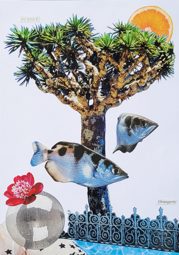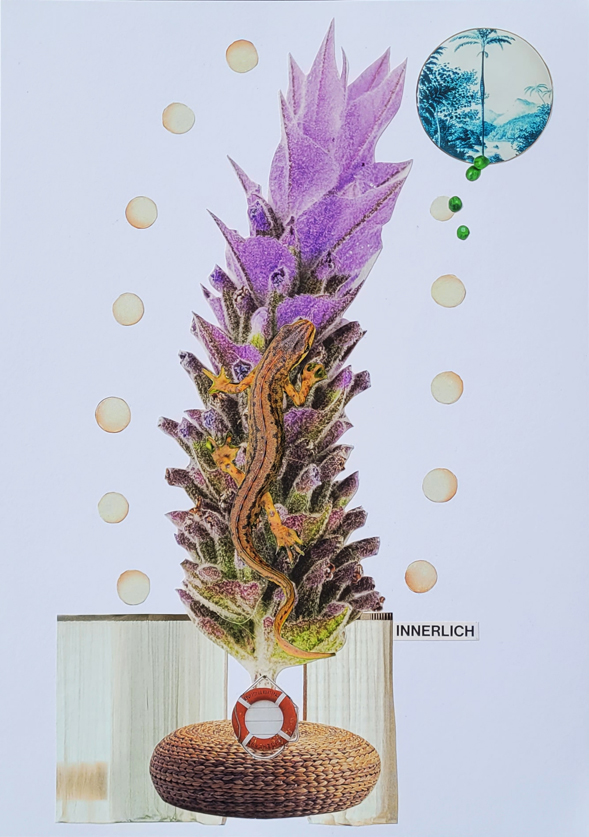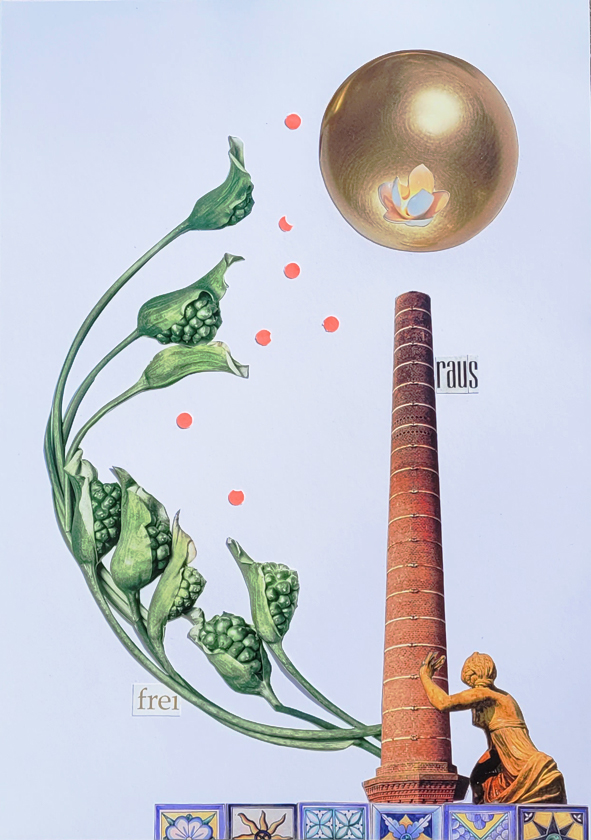 Collage „Série de guérison“, 2024/2025, 89 Collagen (Auswahl) 62_selbststark, 20x30cm, 2025 16_Okapiert!, 20x30cm, 2025 61_innerlich, 20x30cm, 2025 66_ultime horizon, 20x30cm, 2025 83_jungle orangerie, 20x30cm, 2025 „Série de changement“, 2026, Serie ist noch in Arbeit (Auswahl) 01_frei raus, 20x30cm, 2026 04_GoldMarie, 20x30cm, 2026 05_fairy scale, 20x30cm, 2026 09_dans ma peau, 20x30cm, 2026 nach oben