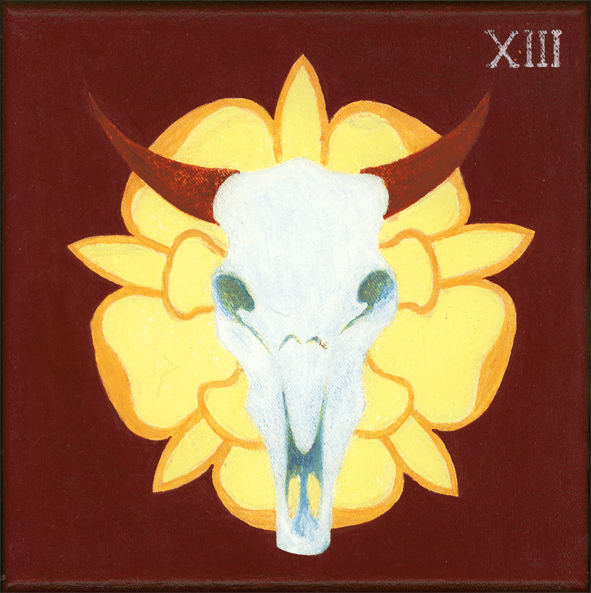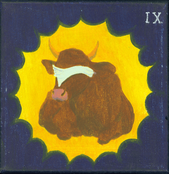 Illustration Goldfisch, 20x30cm, Gouache auf Papier, 2022 Wels 01, 30x20cm, Gouache auf Papier, 1995 Wels 02, 30x20cm, Gouache auf Papier, 1995 Wels 03, 30x20cm, Gouache auf Papier, 1995 Tarot der Kühe (Auswahl) IX Der Eremit, 15x15cm, Acryl auf Leinwand, 1995 XI Gerechtigkeit, 15x15cm, Acryl auf Leinwand, 1995 XIII Der Tod, 15x15cm, Acryl auf Leinwand, 1995 XV Der Teufel, 15x15cm, Acryl auf Leinwand, 1995 XXI Die Welt, 15x15cm, Acryl auf Leinwand, 1995 nach oben